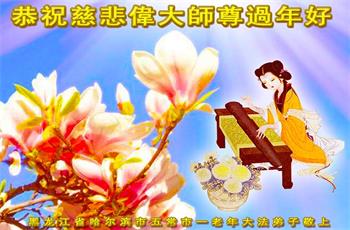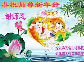 祝师尊过年好!弟子只有精進实修才能报师恩。 黑龙江省哈尔滨市五常市一老年大法弟子恭祝师尊过年好!