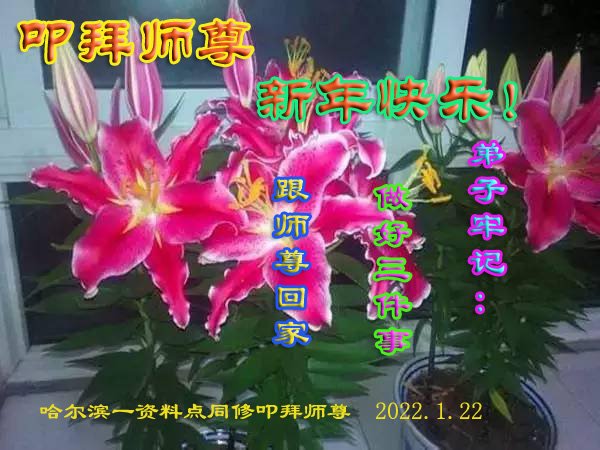 【明慧网二零二二年一月三十一日】 黑龙江省哈尔滨市五常市拉林镇一大法弟子恭祝师尊新年快乐!