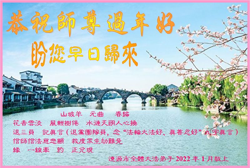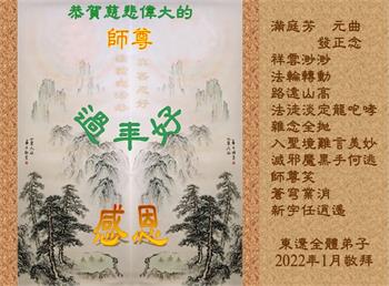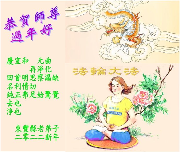 【明慧网二零二二年一月三十一日】 吉林省长春一学法组多位大法弟子恭祝师尊新年快乐!师父您辛苦了!