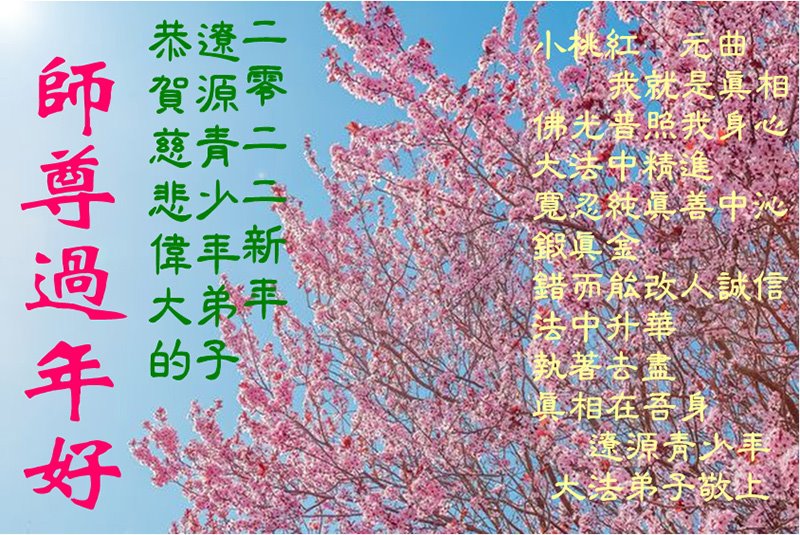 小桃红 元曲 我就是真相 佛光普照我身心 大法中精進 宽忍纯真善中沁 锻真金 错而能改人诚信 法中升华 执着去尽 真相在吾身 吉林省辽源市全体青少年大法弟子敬上 吉林省辽源市全体大法弟子恭祝师尊过年好!