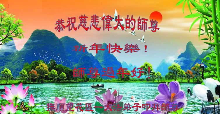 弟子在新的一年里,一定更加精進,修去执着,做好三件事,多救人,跟师尊圆满回家。 辽宁省抚顺大法弟子恭祝师尊新年快乐!
