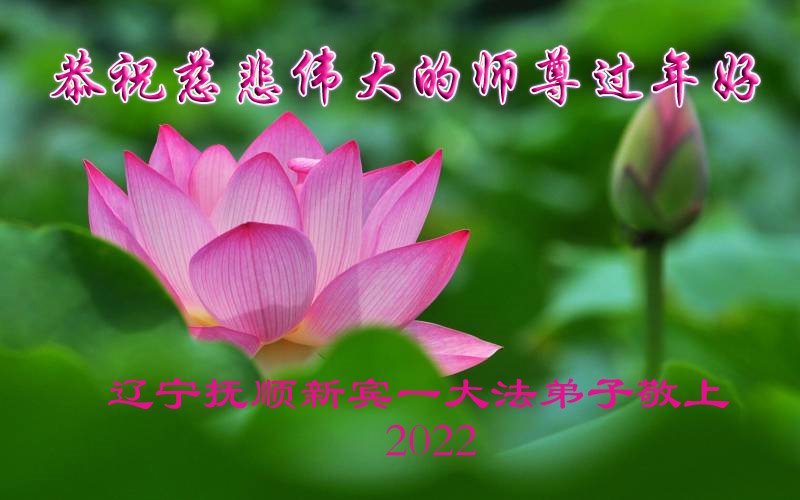 值此2022年新年来临之际,我们全家两代大法弟子及家人恭祝慈悲伟大的师父过年好!师父您辛苦了!弟子们非常想念您!弟子们在师父的时时保护中,又平稳的走过了2021年。弟子们将在新的一年,在这法正人间过渡时期,继续做好三件事,最大限度的放弃自我,尽快的纯净自己,修去私,多救人。谢谢师父!同时我们代表明真相并三:退.的世人谢谢师父的慈悲救度! 弟子们跪拜师父! 辽宁省抚顺市一夫妻大法弟子恭祝师尊新年快乐!
