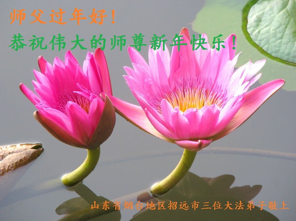 山东省烟台地区招远市三位大法弟子恭祝伟大的师尊新年快乐!
