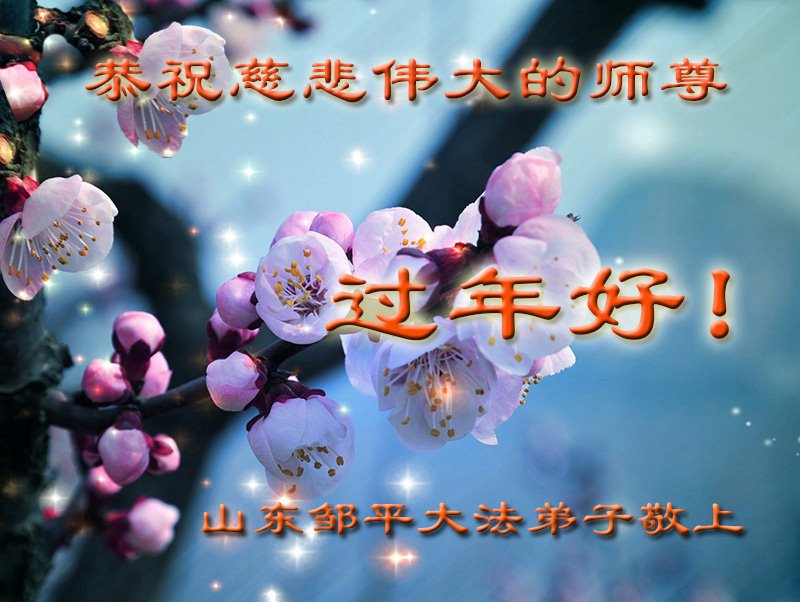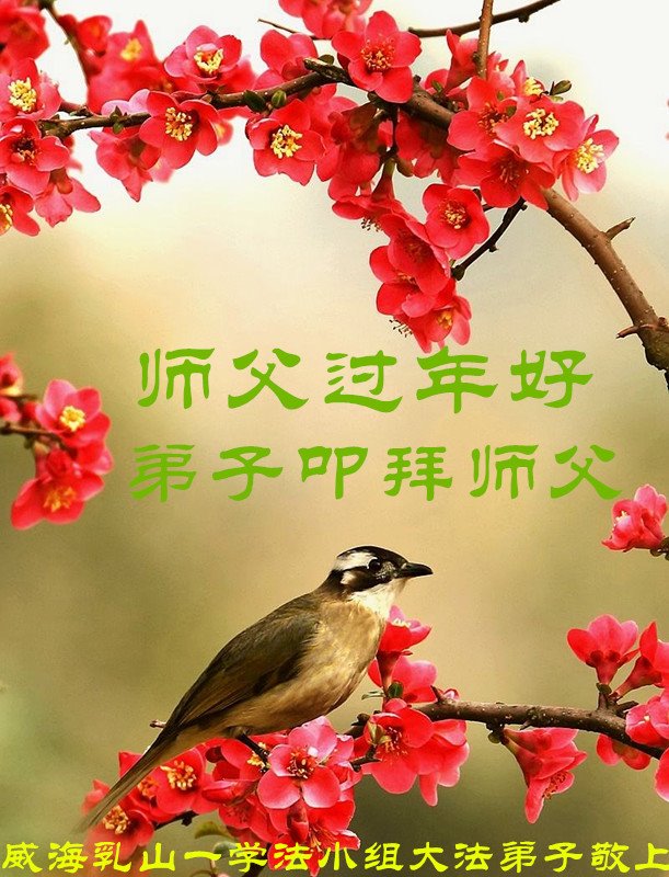 山东省烟台市栖霞市两位大法弟子携全家九人向慈悲伟大的师尊拜年!师尊新年好!恭祝师尊新年快乐!感谢师尊的慈悲救度之恩! 四川省眉山市东坡区大法弟子合十敬祝师尊过年好!