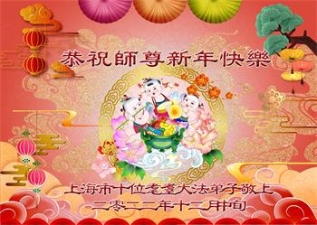 恭祝师尊新年快乐! 弟子谢师恩! 上海市十位耋耄大法弟子敬上 上海市徐汇区一大法弟子恭祝师尊新年快乐!