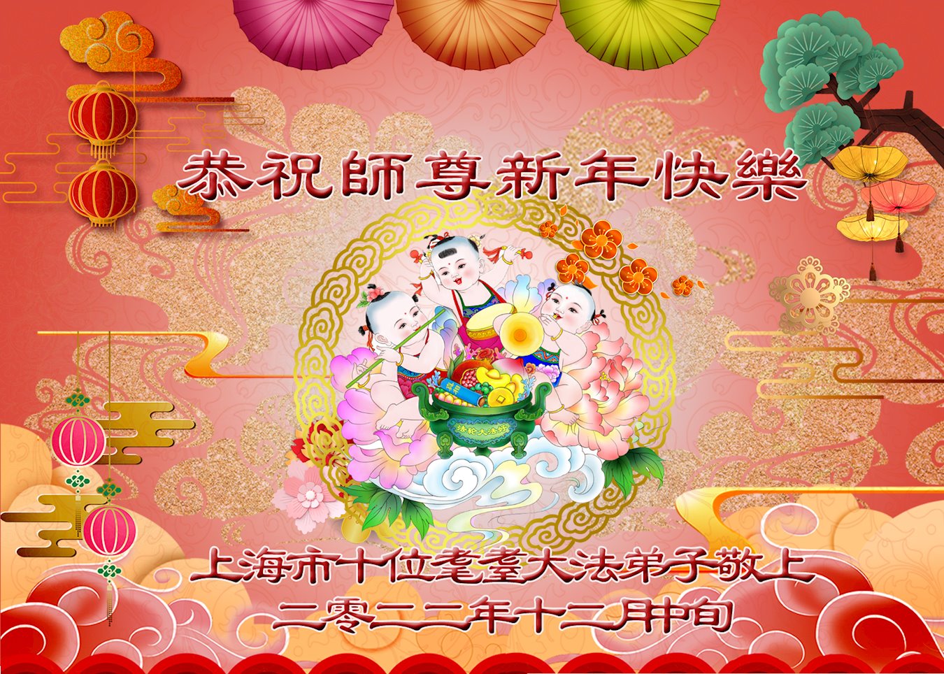 上海市大法弟子恭祝师尊元旦快乐! 上海市大法弟子叩首恭贺! 二零二二年十二月二十四日 上海市十位耋耄大法弟子恭祝师尊新年快乐!