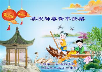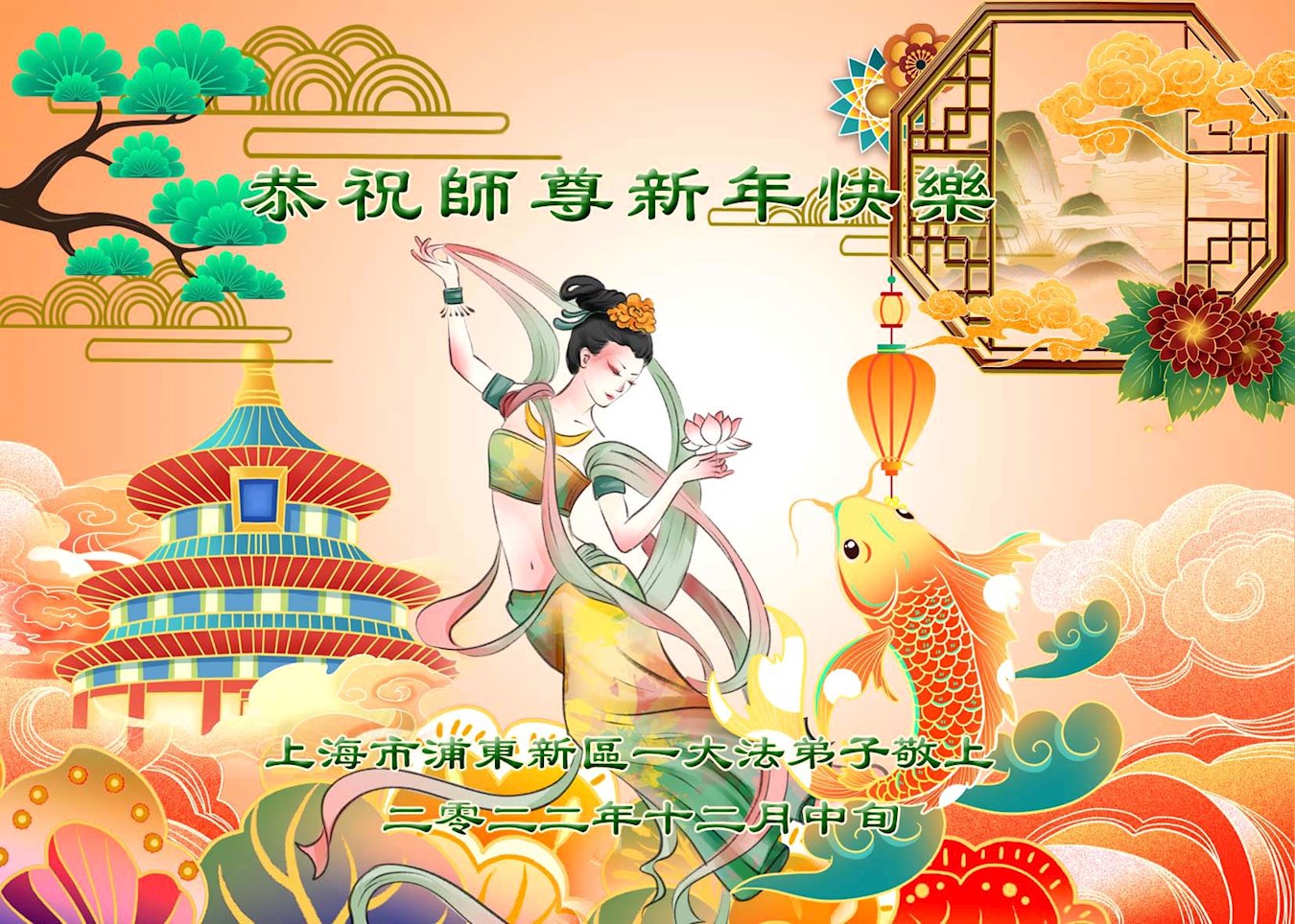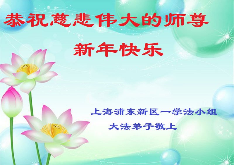 恭祝师父新年快乐! 上海市浦东新区一大法弟子敬上 上海市黄浦区一学法小组大法弟子恭祝师父新年快乐!