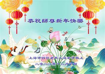 上海一家大法弟子恭祝师尊新年快乐!师尊好!法轮大法好! 上海市四位老年大法弟子恭祝师父新年快乐!