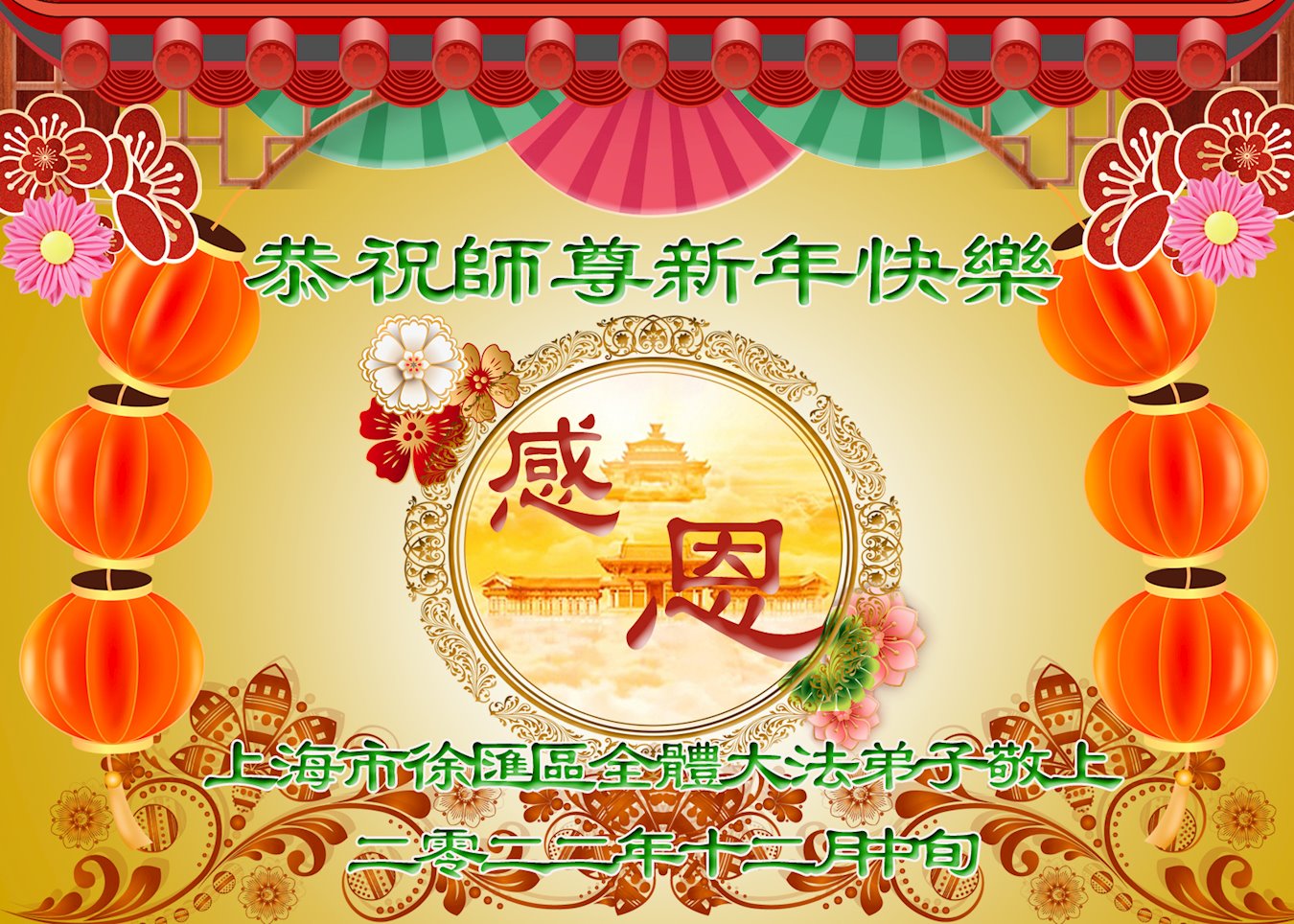 恭祝师父新年快乐! 上海市四位老年大法弟子敬上 上海市徐汇区全体大法弟子恭祝师尊新年快乐!