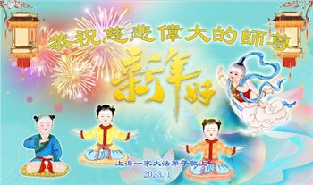 恭祝师父新年快乐! 上海市黄浦区一学法小组大法弟子敬上 上海一家大法弟子恭祝慈悲伟大的师尊新年好!