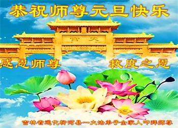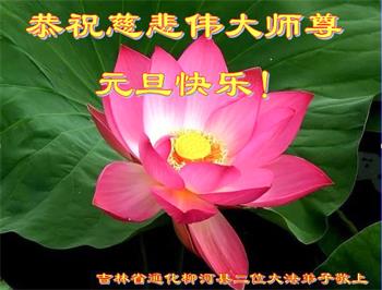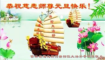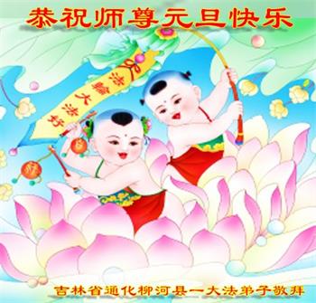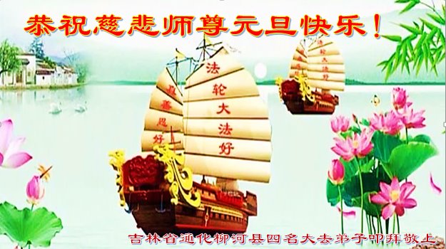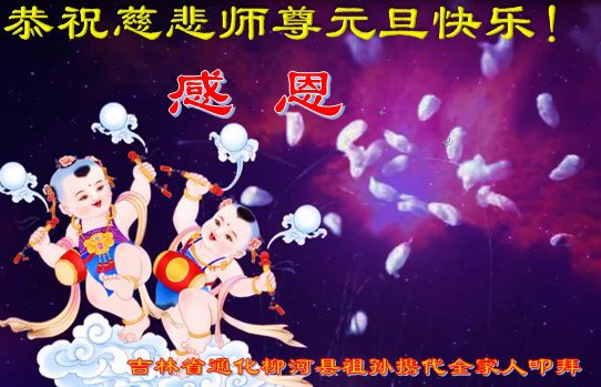 恭祝慈悲伟大的师尊元旦快乐! 叩拜恩师!谢谢师尊慈悲救度! 吉林省通化柳河县两位大法弟子敬上 吉林省通化市柳河县四位大法弟子恭祝慈悲伟大的师尊元旦快乐!