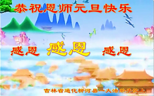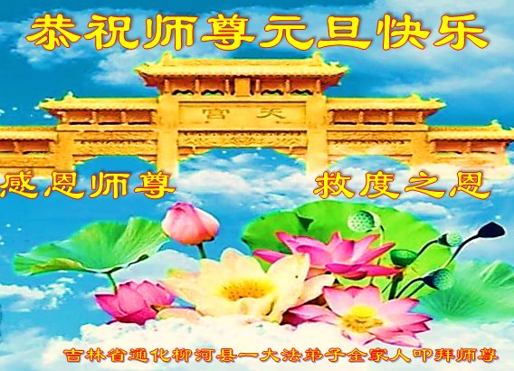吉林省通化柳河县一大法弟子跪谢师尊救度洪恩! 新年到来之际,向慈悲伟大的师父致以节日的问候,师尊新年好! 自从得法修炼以来,感恩师父慈悲苦度,感恩师父从地狱中把满身业力的我捞起洗净,消去业力净化了心灵,使我了悟了人生真谛。在我几次遇到生死关的时刻,是伟大师父救了我的命,替我承担,还了我生生的业债,使我脱胎换骨无病一身轻,生命得以延续,走向返本归真之路。 用人的语言难以言表感恩之情,唯有在仅剩的时间里,精進实修,听师父的话,多学法,学好法,时时处处用法的标准严格要求自己,遇事向内找,提高心性,修去所有的执着和人心,做好三件事,多救人,不辜负师父与众生的期盼,完成大法弟子的使命。 吉林省通化市柳河县一大法弟子全家人恭祝慈悲伟大的师尊新年快乐!