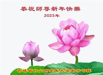 恭祝师尊新年快乐! 吉林省白山市老年大法弟子2023年元旦叩拜 吉林省白山市全体大法弟子恭祝师尊新年快乐!