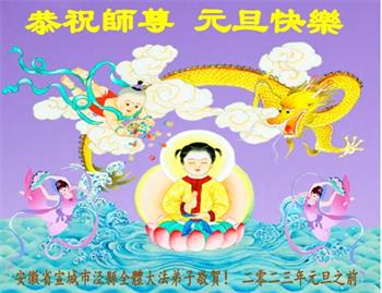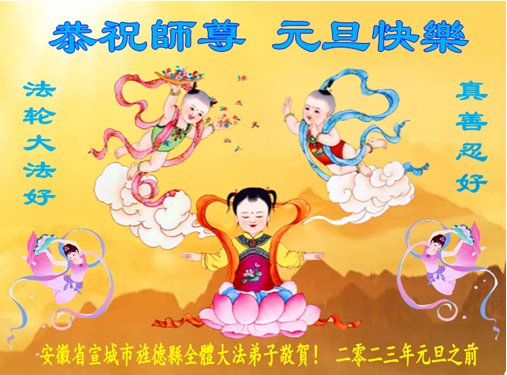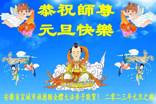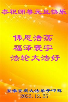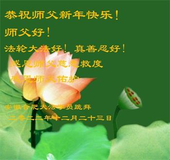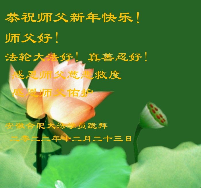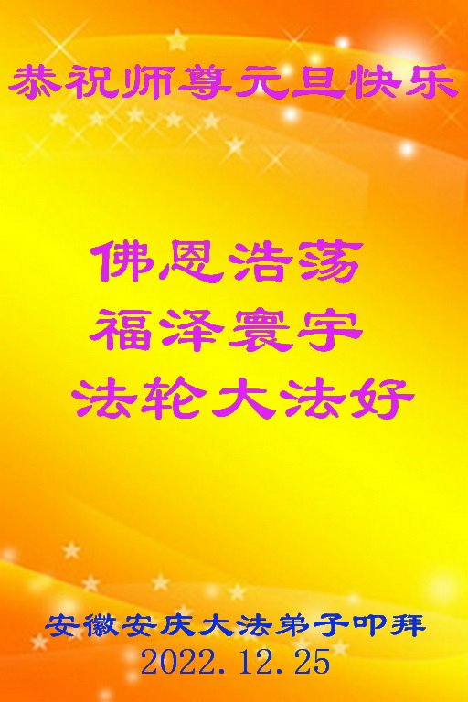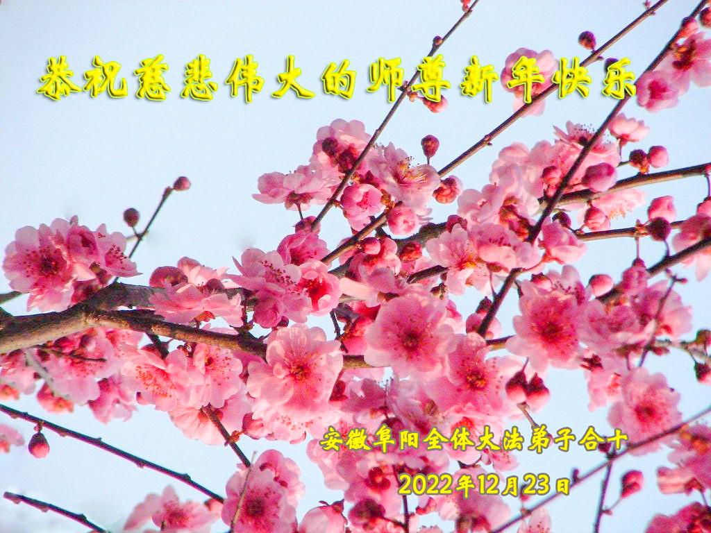 【明慧网二零二二年十二月二十九日】 安徽省阜阳市太和县大法弟子恭祝慈悲伟大的师尊新年快乐!