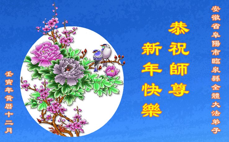 恭祝师尊新年快乐! 安徽临泉一夫妻大法弟子叩拜 安徽省阜阳市临泉县一大法弟子全家人恭祝师尊新年快乐!