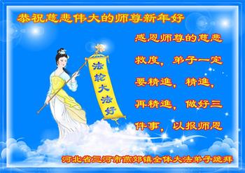 河北省廊坊市东安全体大法弟子敬祝慈悲伟大的师尊新年快乐!