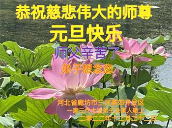 河北廊坊开发区全体弟子恭祝慈悲伟大的师尊2023新年好! 河北省廊坊市三河燕郊开发区大法弟子恭祝慈悲伟大的师尊元旦快乐!
