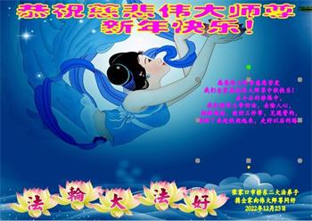 恭祝伟大师尊新年快乐! 感恩伟大师尊救度我们 弟子们一定要在助师正法的路上做好三件事,共同精進,共同提高。 张家口市桥东三人学法小组全体大法弟子向伟大师尊问好 2022年12月23日 河北省张家口一大法弟子携全家人恭祝伟大师尊新年快乐!
