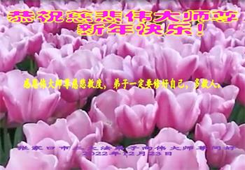 恭祝伟大师尊新年快乐! 感恩伟大师尊救度我们 谢谢师尊给我安排好的修炼环境,全家都支持大法,使我能够更好的兑现史前大愿 我代表全家,再次拜谢伟大师尊! 张家口市桥东区一大法弟子携全家人向伟大师尊问好 2022年12月23日 河北省张家口桥东二大法弟子携全家恭祝伟大师尊新年快乐!