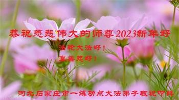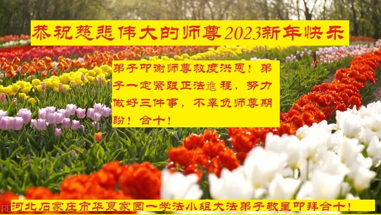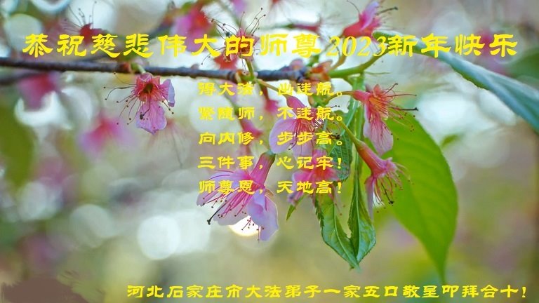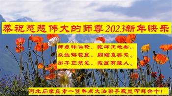 祝师父新年快乐! 弟子做好三件事,跟师父回家。 合十 河北石家庄谈固大法弟子 二零二二年十二月二十四日 河北石家庄市资料点大法弟子恭祝慈悲伟大的师尊2023新年好!