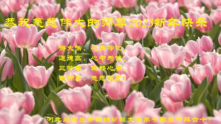 转法轮指航明灯,大法弟子心中明。 学法修心道德升,做好三事救众生。 河北石家庄市一大法弟子敬祝叩拜 河北石家庄市大法弟子恭祝慈悲伟大的师尊2023新年好!