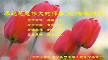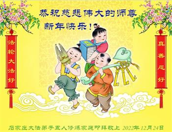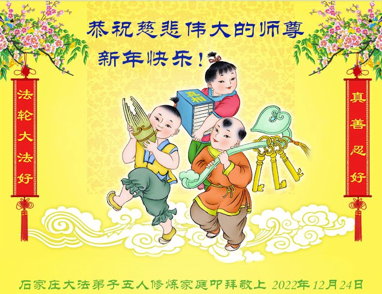 【明慧网二零二二年十二月二十九日】 河北省石家庄大法弟子五人修炼家庭恭祝慈悲伟大的师尊新年快乐!