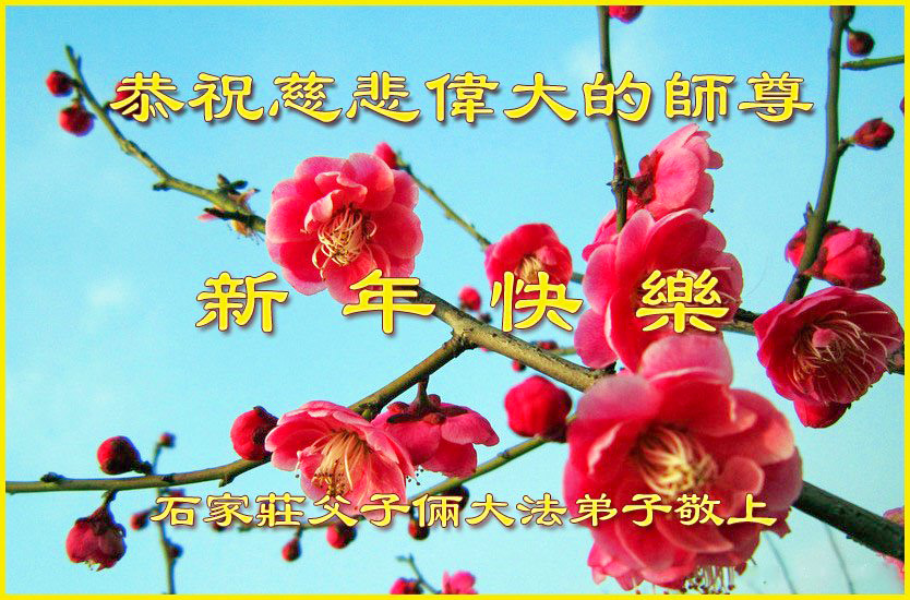 大法开传,再造天宇。 众生得救,普天同庆。 虔诚敬拜,创世师尊。 真善忍好!天地同化。 河北石家庄市全体大法弟子敬呈叩拜合十 河北省石家庄市大法弟子恭祝师尊新年快乐!
