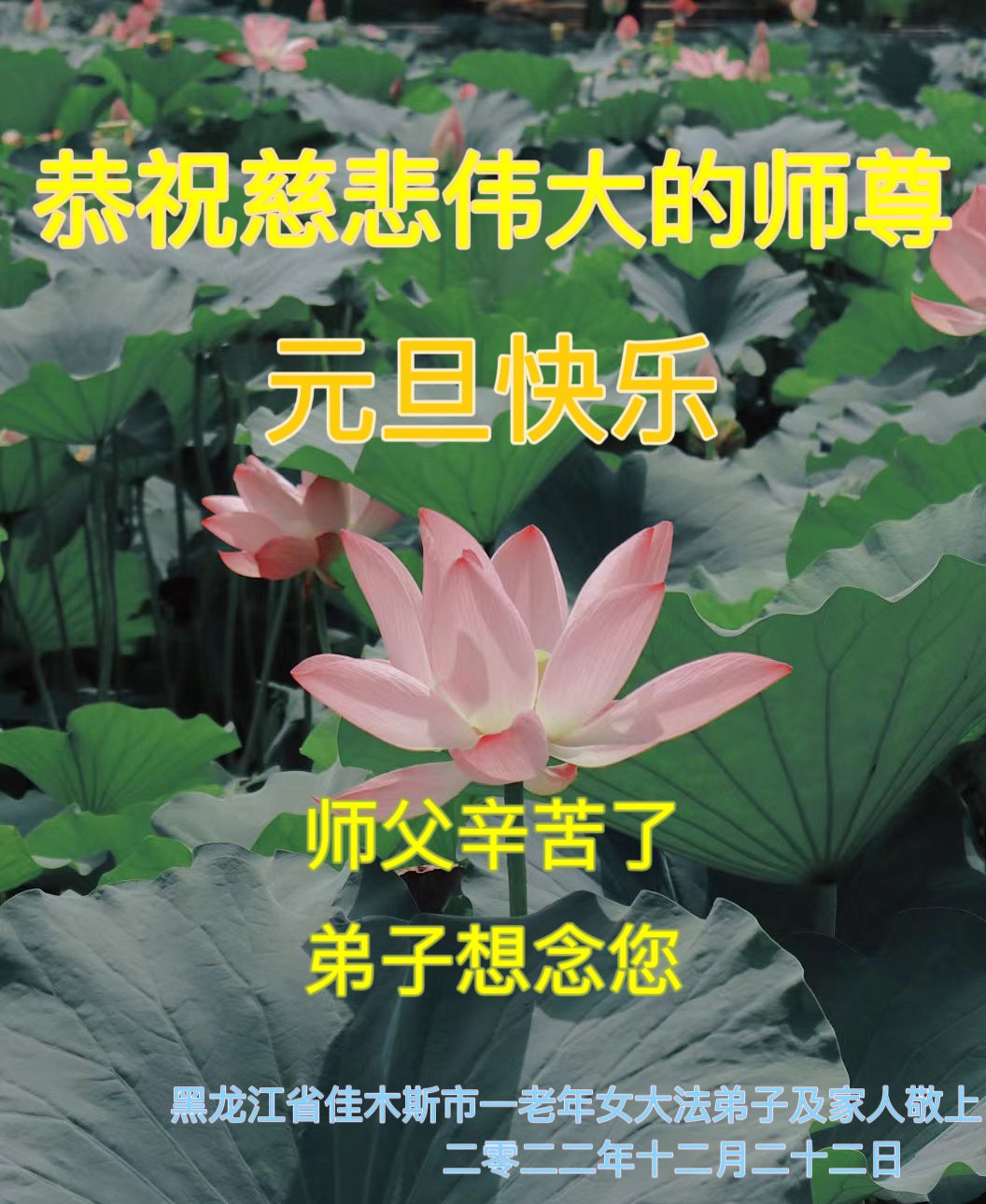 元旦快乐!师父辛苦了!弟子想念您!黑龙江省佳木斯市一老年女大法弟子及家人敬上 二零二二年十二月二十二日 黑龙江省佳木斯市夫妻大法弟子恭祝师尊新年快乐!