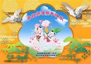 师父好,恭祝您新年快乐!感恩您的慈悲苦度。 黑龙江省佳木斯地区西门里大法弟子和婆婆恭祝师尊新年快乐!