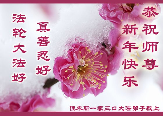 恭祝师尊新年快乐!感恩师尊,谢谢师尊的慈悲救度与保护,使弟子平稳度过这一年,弟子唯有努力做好三件事,以慰师恩。 佳木斯一家三口大法弟子敬上 黑龙江省佳木斯大法弟子恭祝师尊新年好!