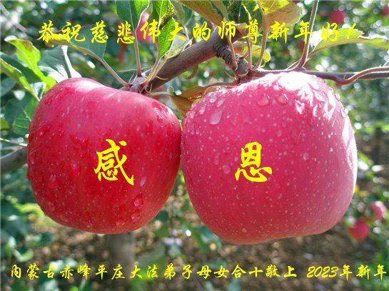 【明慧网二零二二年十二月二十九日】 内蒙古赤峰一母女大法弟子恭祝师父新年快乐!