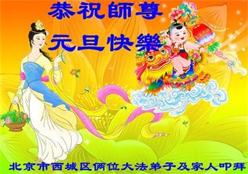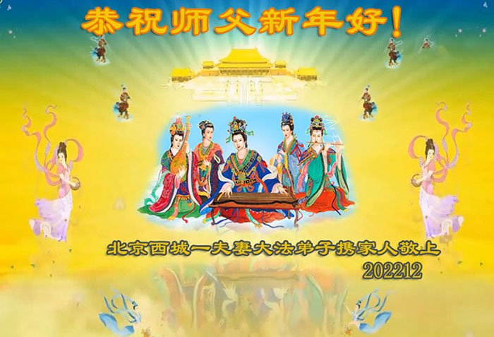 北京西城一夫妻大法弟子携家人恭祝师父新年好!