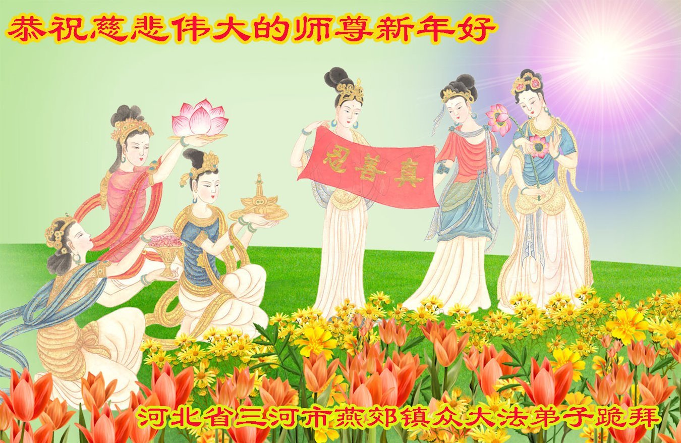 【明慧网二零二二年十二月二十九日】 河北省廊坊市三河市燕郊镇七人学法小组大法弟子恭祝慈悲伟大的师尊新年好!