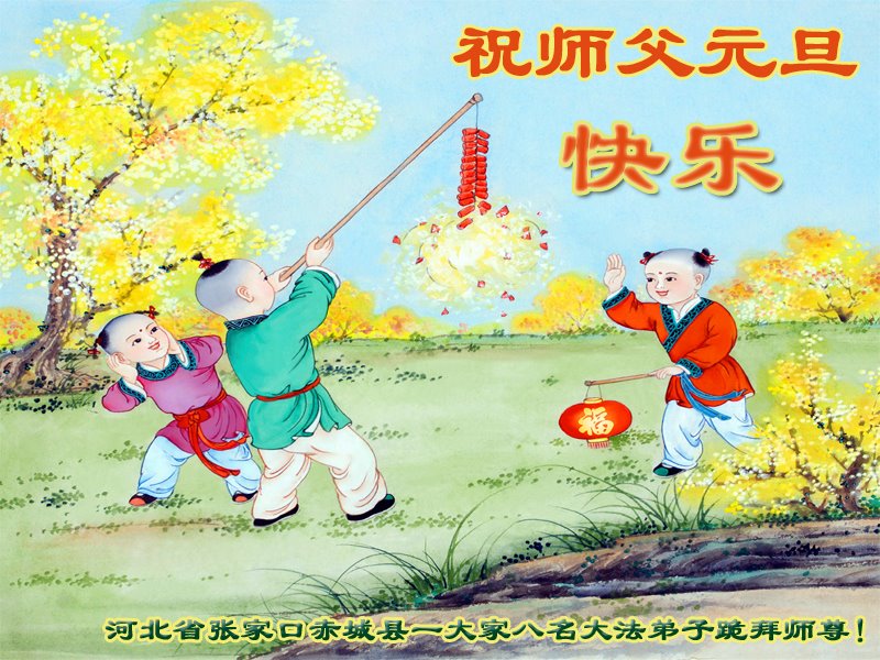 恭祝师尊新年快乐! 张家口市阳原县全体大法弟子敬上 河北省张家口赤城县一学法小组祝慈悲伟大的师父元旦快乐!