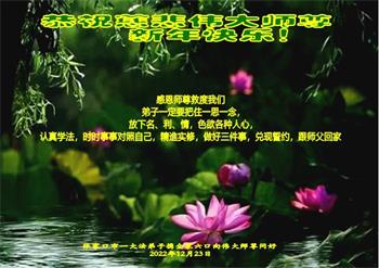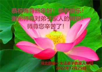 师尊辛苦了!法轮大法好!真善忍好! 张家口市一学法小组叩谢师恩! 二零二二年十二月二十四日 河北张家口大法弟子恭祝师尊新年好!