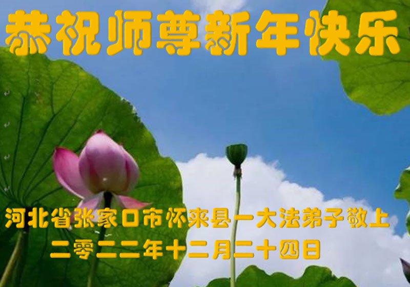 一年一度的新年到了,感恩师尊又一年的慈悲与精心保护,弟子平安走过来了。在这一年里,弟子在过程中真正的按照修炼人的标准要求自己,每天上午学法,下午出去讲真相救人,每天不间断。即使这样,自己总是觉的距离大法的要求还是差的很远,在新的一年里要做的更好。共产红魔快解体了,弟子疫情期间不畏艰险多救人,惟愿师尊笑! 河北省张家口市怀安县一大法弟子向慈悲伟大的师父问好!恭祝师尊2023年新年快乐!