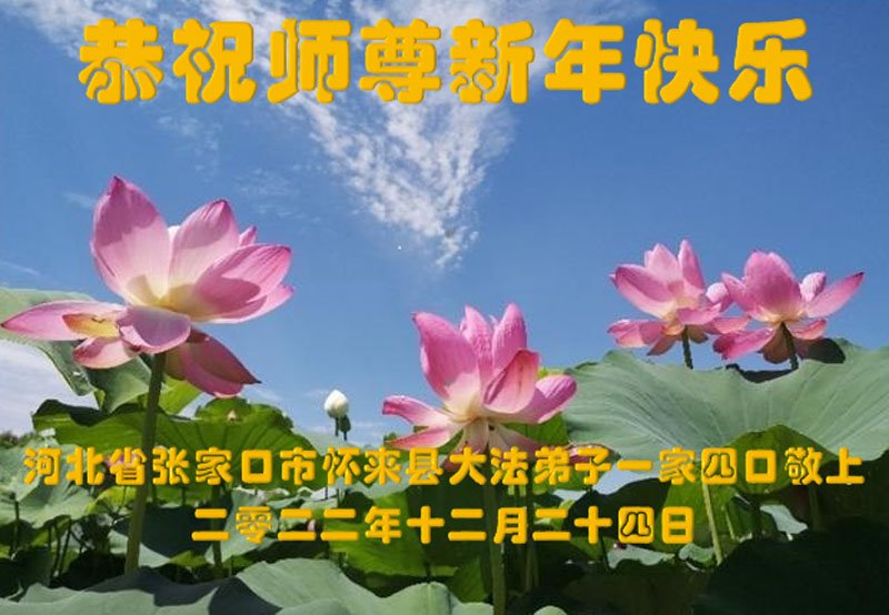 【明慧网二零二二年十二月二十九日】 河北省张家口一大法弟子携全家六口向伟大师尊问好