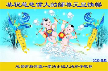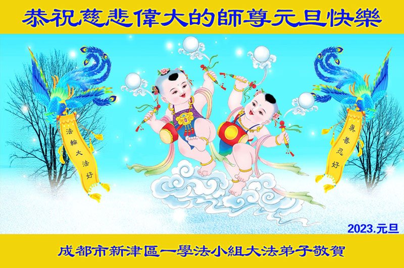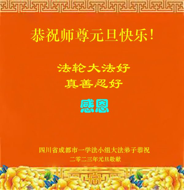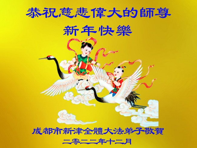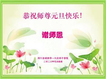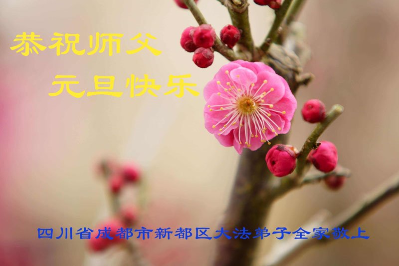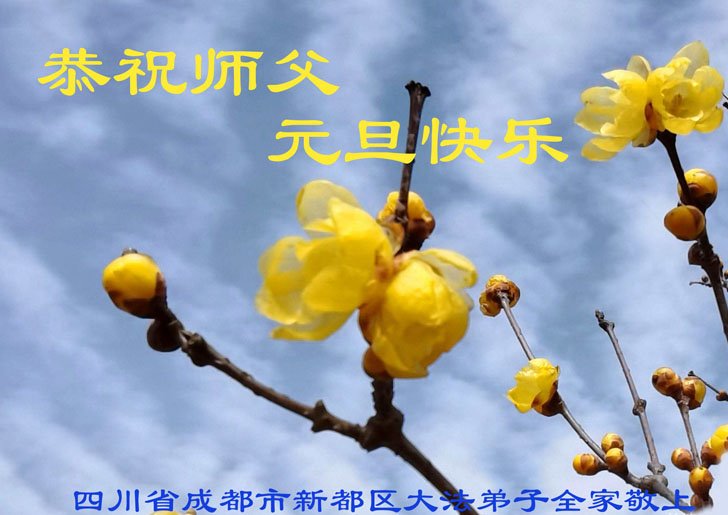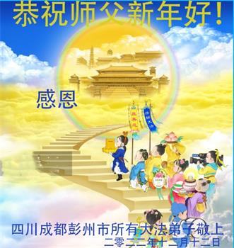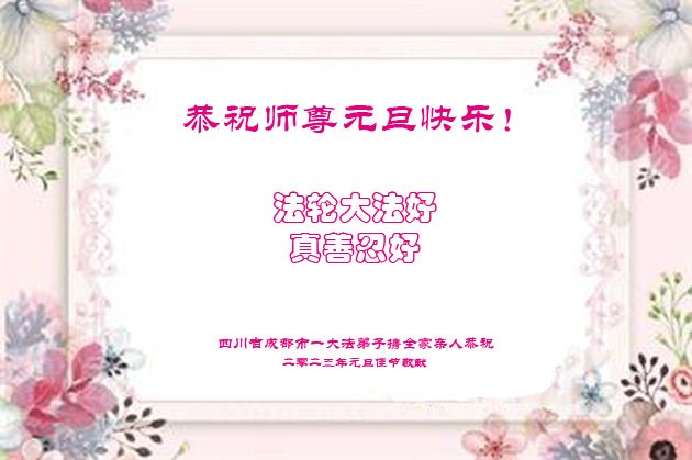【明慧网二零二二年十二月二十九日】 四川省成都市新都区大法弟子全家恭祝慈悲伟大的师父元旦快乐!