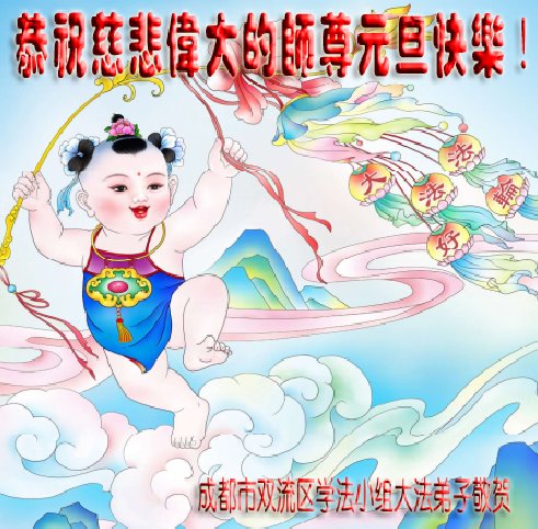 恭祝慈悲伟大的师尊元旦快乐! 四川省成都市双流区全体大法弟子敬贺 四川省成都市双流区学法小组大法弟子恭祝慈悲伟大的师尊元旦快乐!