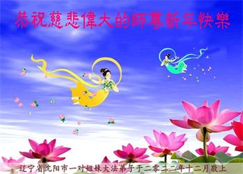 辽宁省沈阳市一对姐妹大法弟子恭祝慈悲伟大的师尊新年快乐!