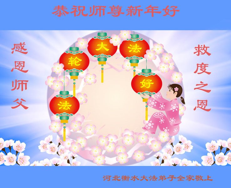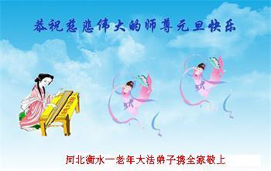 河北衡水一老年大法弟子携全家恭祝师父元旦快乐!