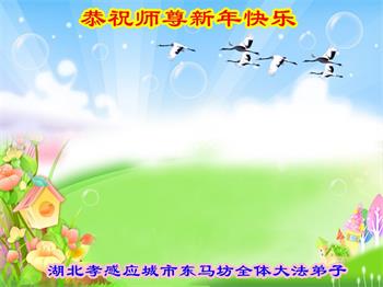 湖北孝感应城市东马坊全体大法弟子敬上 湖北孝感应城市东马坊全体大法弟子恭祝师尊新年快乐!