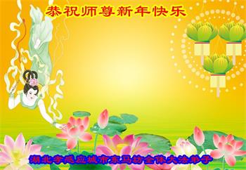 湖北孝感应城市全体大法弟子敬上 湖北省孝感市应城市全体大法弟子恭祝慈悲伟大的师尊新年快乐!