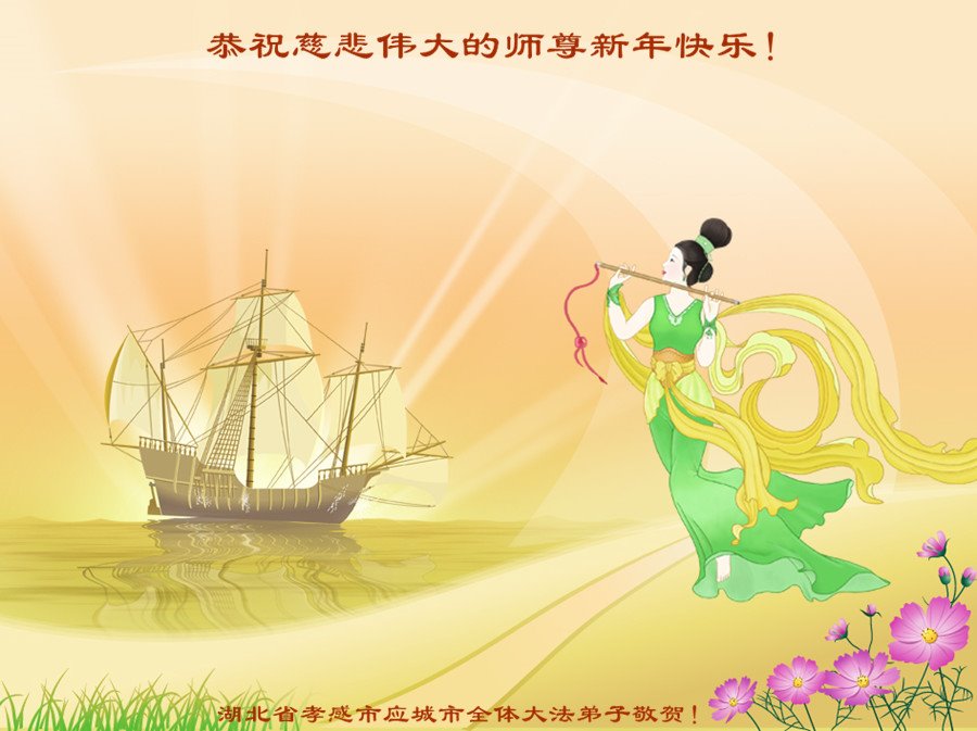 湖北孝感应城市全体大法弟子敬上 湖北孝感应城市全体大法弟子恭祝师尊新年快乐!