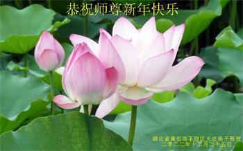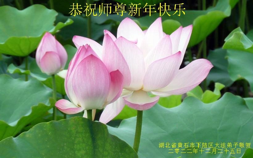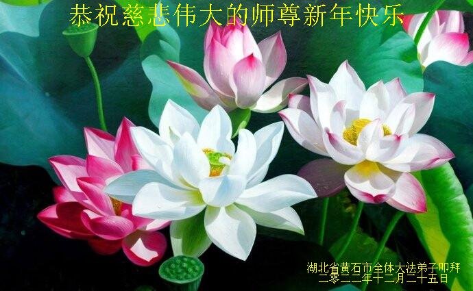 【明慧网二零二二年十二月二十九日】 湖北省黄石市全体大法弟子恭祝慈悲伟大的师尊新年快乐!