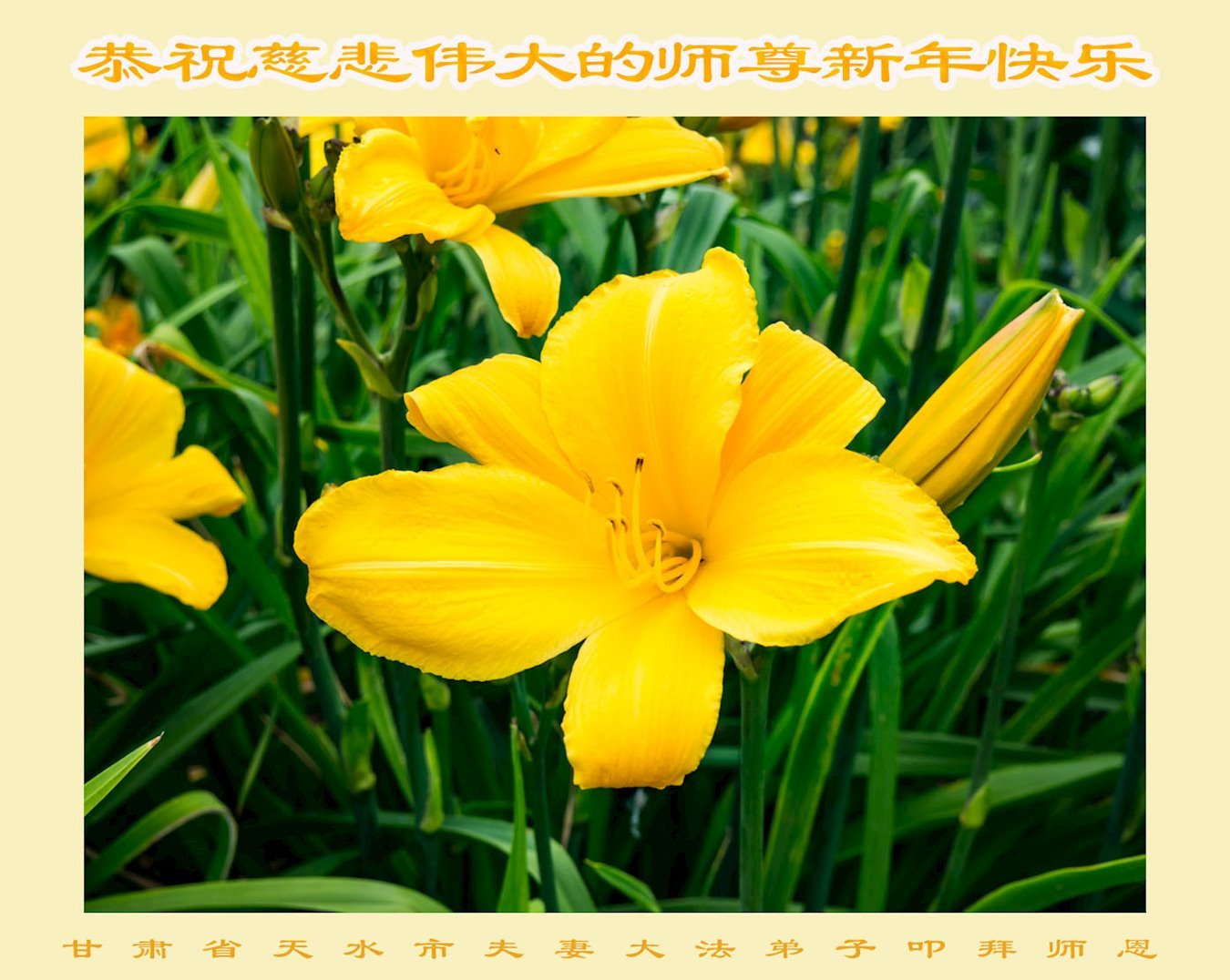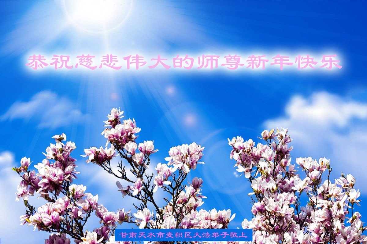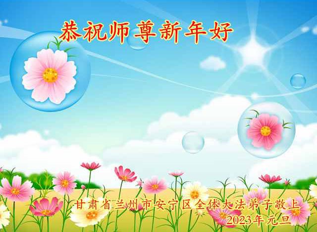 甘肃省天水市一大法弟子恭祝慈悲伟大的师父元旦快乐!弟子惟愿做好三件事,完成自己的使命,让师父为弟子少一些操劳。 甘肃省兰州市安宁区全体大法弟子恭祝师尊新年好!