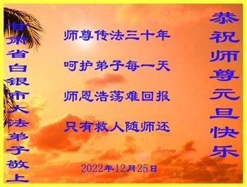 【明慧网二零二二年十二月二十九日】 甘肃省白银市大法弟子恭祝师尊元旦快乐!