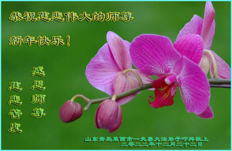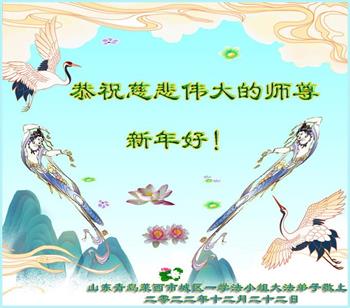 【明慧网二零二二年十二月二十九日】 山东省青岛平度市一老年大法弟子恭祝师父元旦快乐!