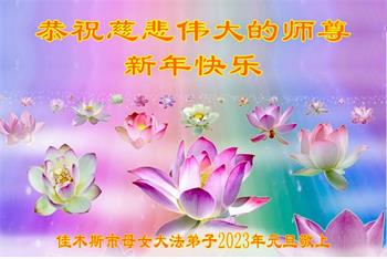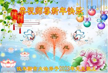 【明慧网二零二二年十二月二十九日】 黑龙江省佳木斯市一大法弟子恭祝慈悲伟大的师尊新年快乐!