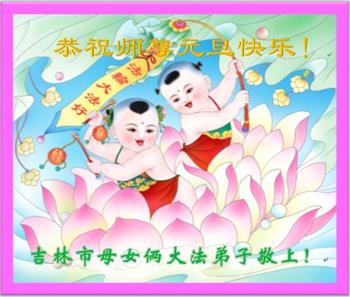 吉林省吉林市母女俩大法弟子恭祝师尊元旦快乐!